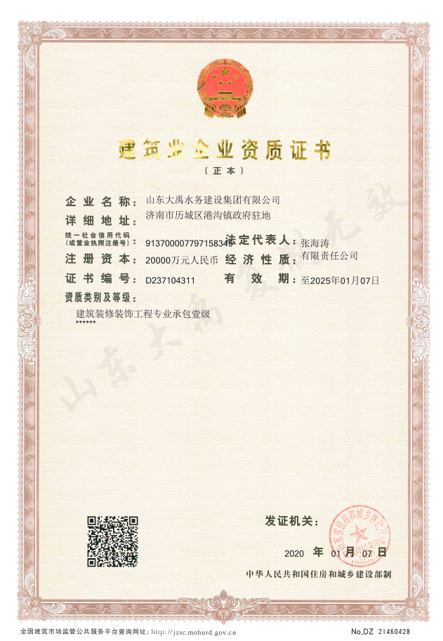 您好,歡迎訪問山東大禹水務建設集團有限公司官方網站!