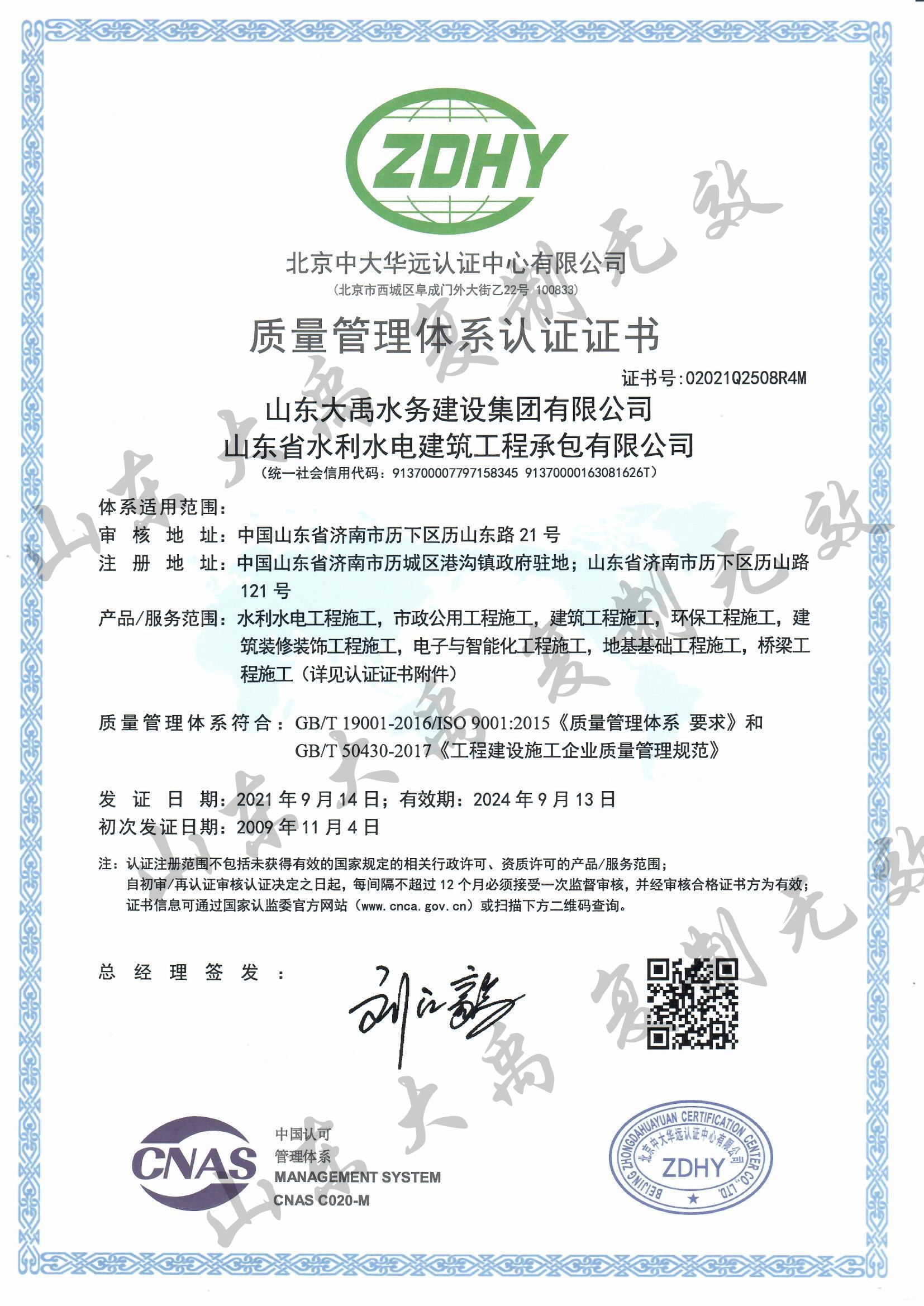 山東大禹水務(wù)建設(shè)集團(tuán)有限公司