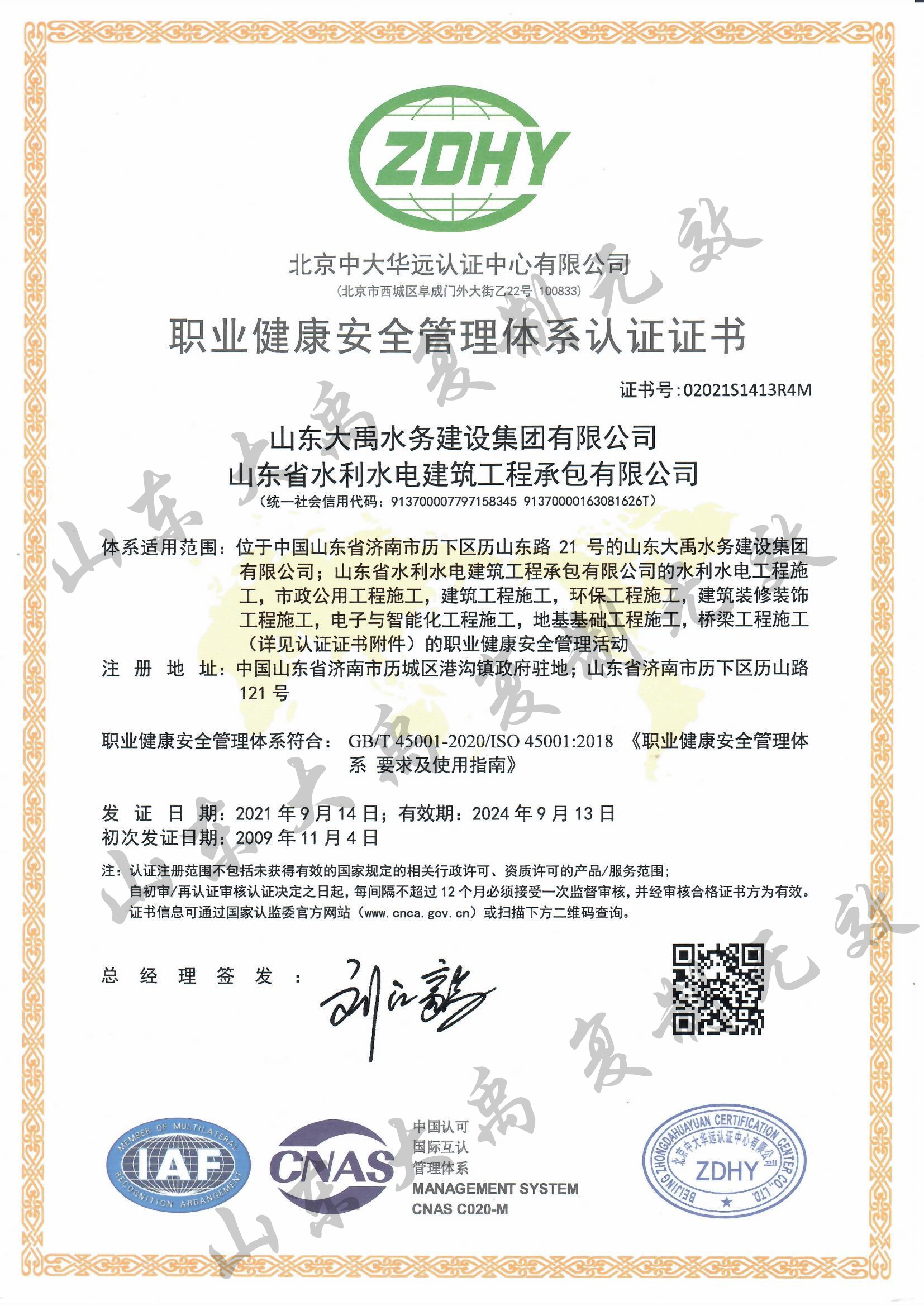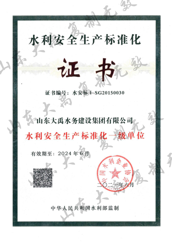 水利安全生產(chǎn)標(biāo)準(zhǔn)化證書